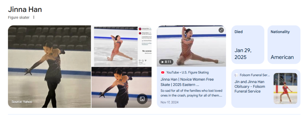 Jinna Han was a 13-year-old ice skater whose life, though tragically cut short, left an enduring impact on everyone who knew her. Known for her talent, grace, and dedication on the ice, Jinna Han was more than just a promising athlete—she was a vibrant, compassionate individual whose presence brightened every room. Her untimely passing in the devastating American Airlines crash shocked her community and the wider world, leaving friends, family, and fans grappling with the loss of such a young, inspiring figure. Through her achievements, her spirit, and the memories she left behind, Jinna Han continues to be remembered not just as a skater, but as a remarkable young girl who lived life fully and passionately.